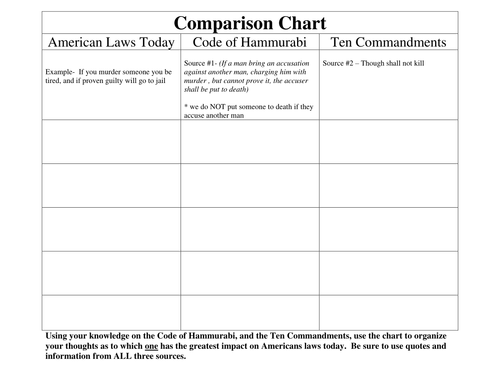 Comparison Chart American Laws Today Code Of Hammurabi Ten Commandments Graphic Org Teaching Resources